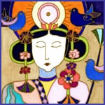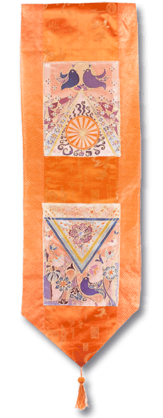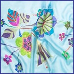 Seide als Bildträger ist mit ihren Eigenschaften Flexibilität, Transparenz und Leichtigkeit für mich von großer Faszination. Auf der Seide ist die Leuchtkraft der Farben besonders groß. Goldene Konturen passen gut zu reinen Farben.